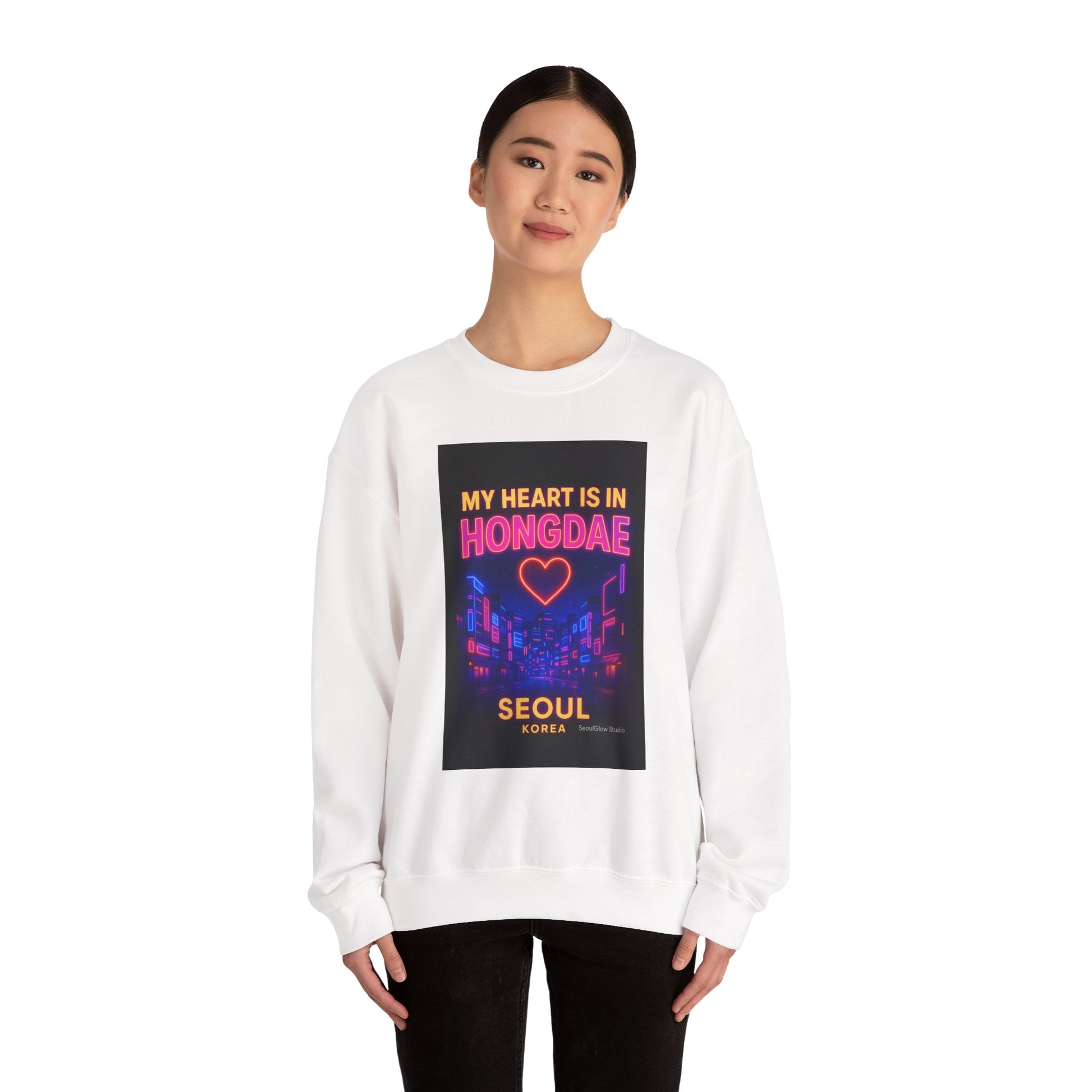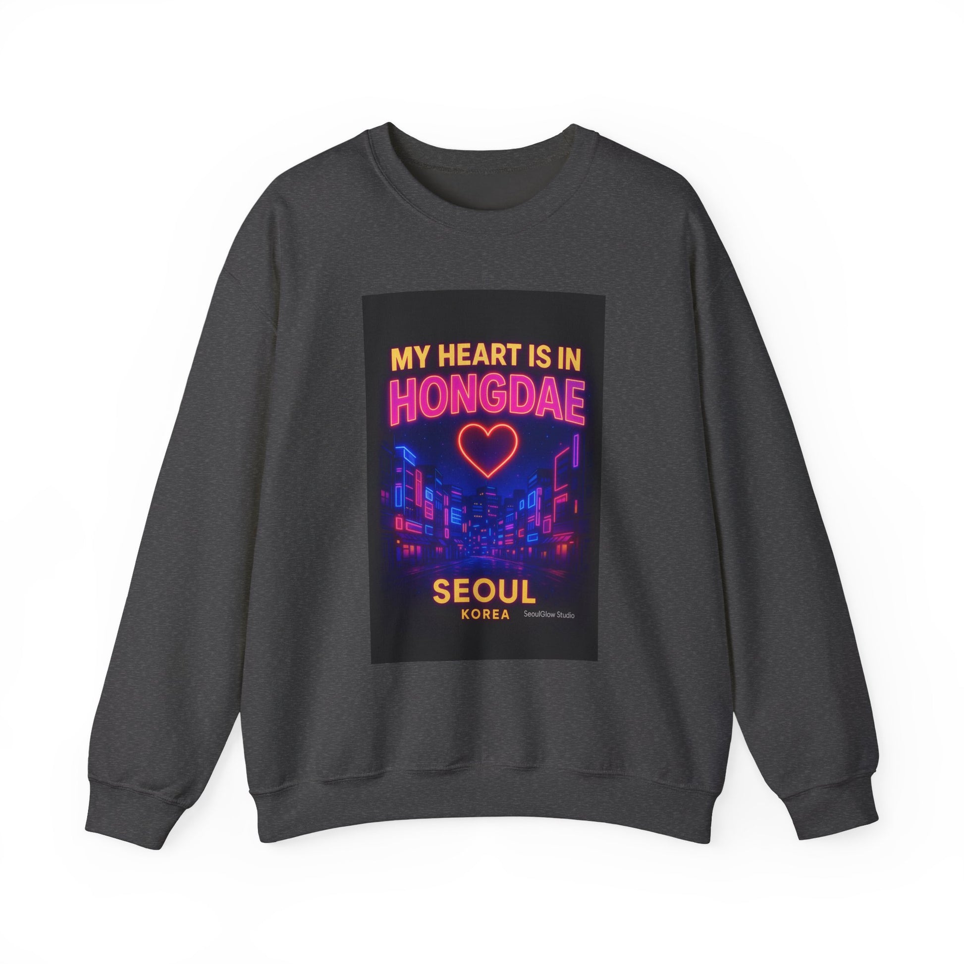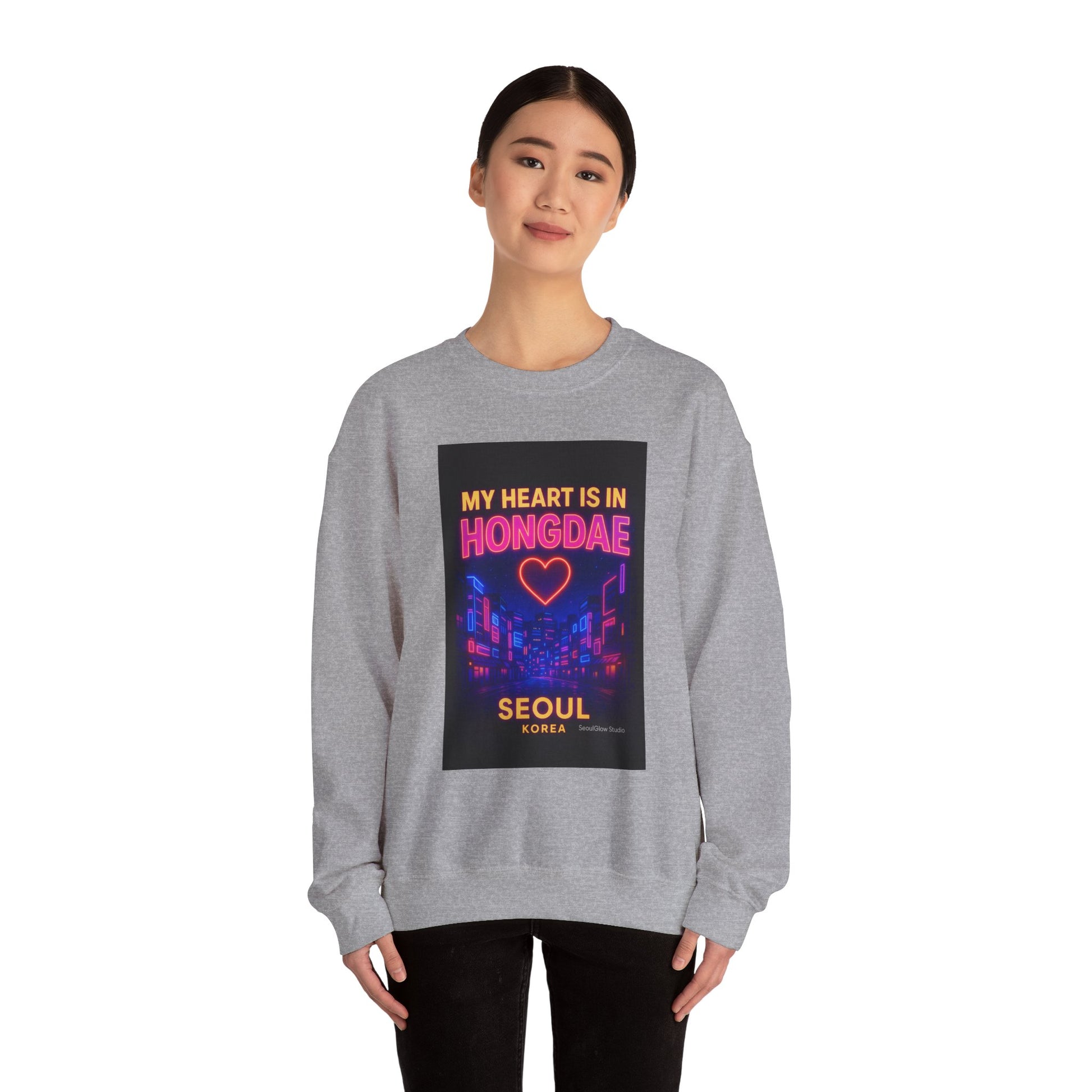 Heart in Hongdae Hoodie, Unisex Crewneck Sweatshirt, Streetwear, Aesthetic Fashion, Seoul Gift, Layering Essential